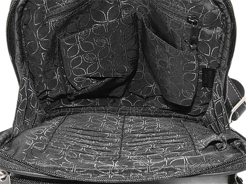 Interior lining with a back wall zip pocket and multifunctional slip pockets.
